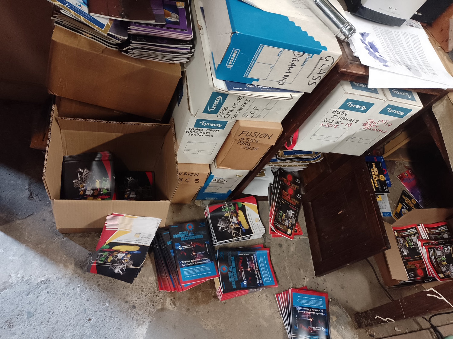 As Editor of the Journal of the British Society of Scientific Glassblowers I am allowed to keep surplus copies since the Journal is distributed from my home. Over the years I have built up quite a mountain of surplus copies. They would make a great collage I often think so one day this may happen. Now they languish in boxes in my studio. My position as Editor means I can swap magazines and journals with other similar organisations such as those in Germany and America. A right little old archive of valuable information me thinks. I daresay some will see this as a very primitive behaviour as one can get everything that people ever wanted to know from the Internet!