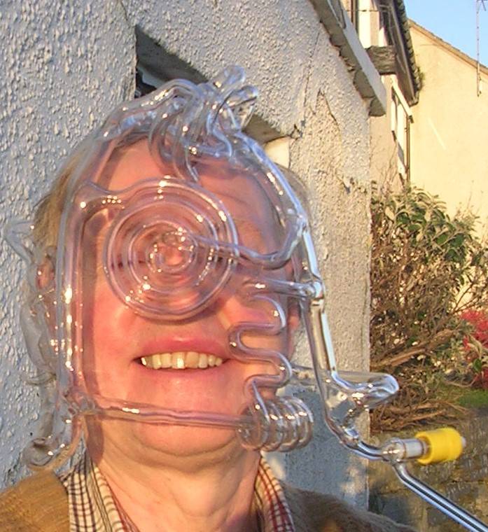 They say it’s a cover up, but masks look like they are here to stay, for at least a while. I started making glass masks which of course aren’t really masks, a while ago. The idea was prompted by working with an artist who has the idea of pumping biological liquids around the face and seemed like a good idea to use glass tubing. I suppose plastic tubing would work but be less fun for me. I only burnt my nose once!!!!