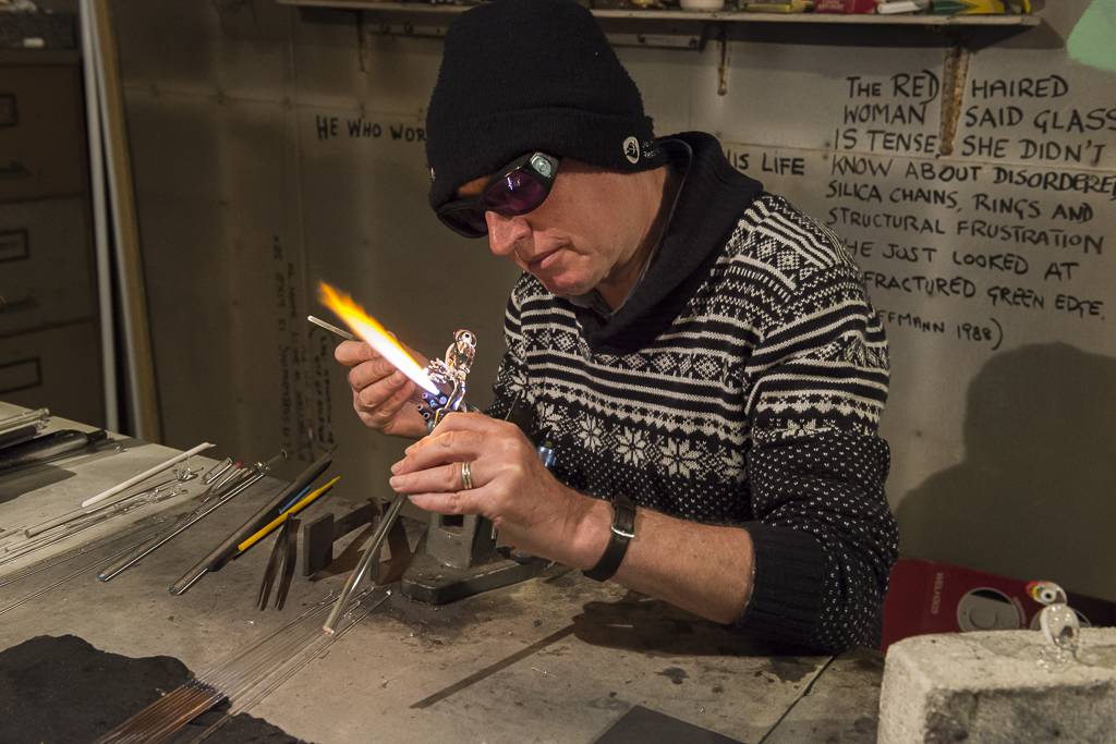The think about being skilled with a craft that its pretty obvious when you aren’t in control, and it all goes pear shaped which is fine if you are making a fruit basket but not if you are tackling a tricky human figure from solid glass at 900 degrees centigrade. The skill of not getting burnt is secondary to the skill of finish the glass piece without it shattering.